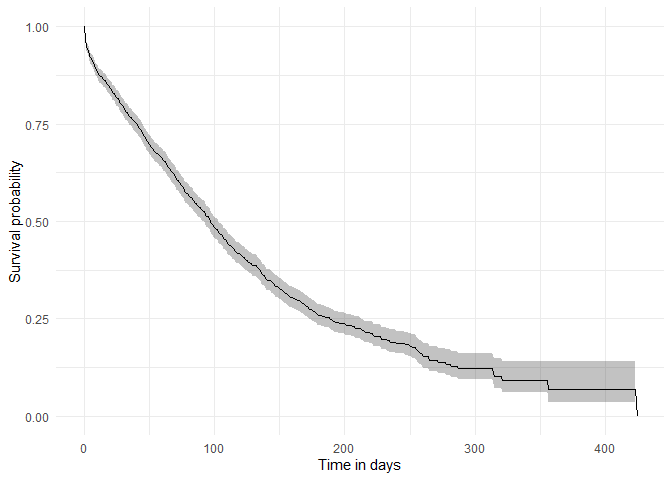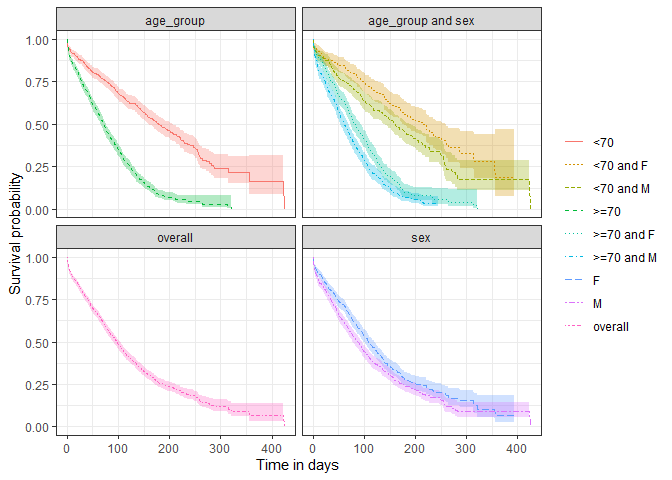 #> $ additional_level <chr> "0", "0", "0", "1", "1", "1", "2", "2", "2", "3", "3"…Now that we have our results, we can quickly create a plot summarising survival over time.
