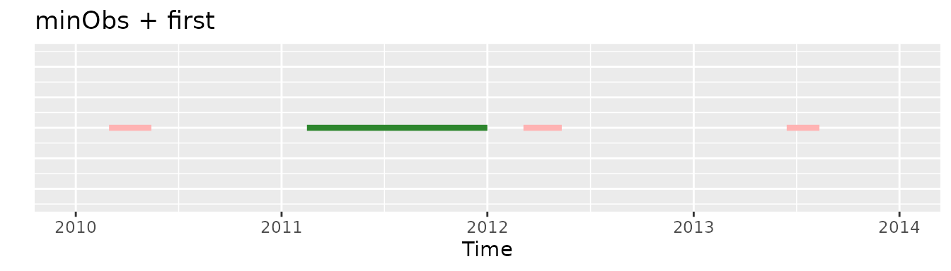 If we would apply the initially the washout requirement and then the minObs one we would end with only the last record selected: