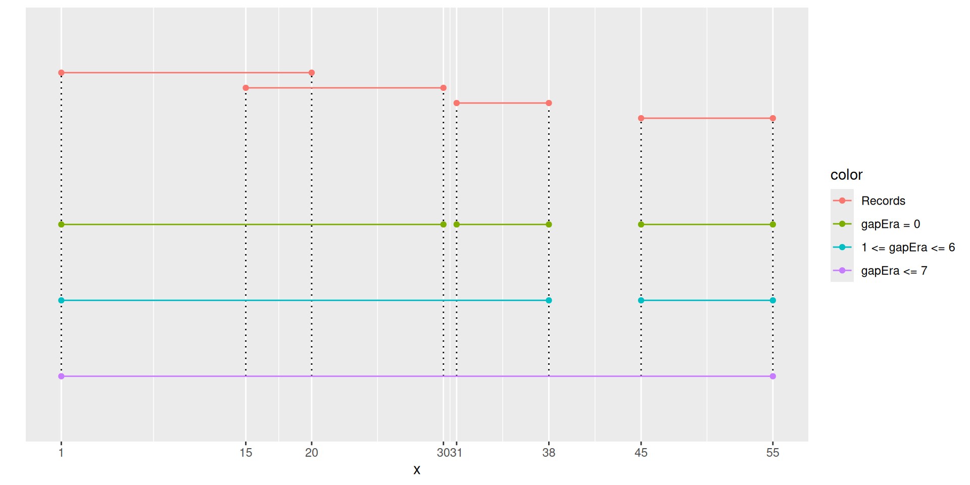 Number of days between two continuous exposures to be considered in the same era. Records that have fewer days between them than this gap will be concatenated into the same cohort record.