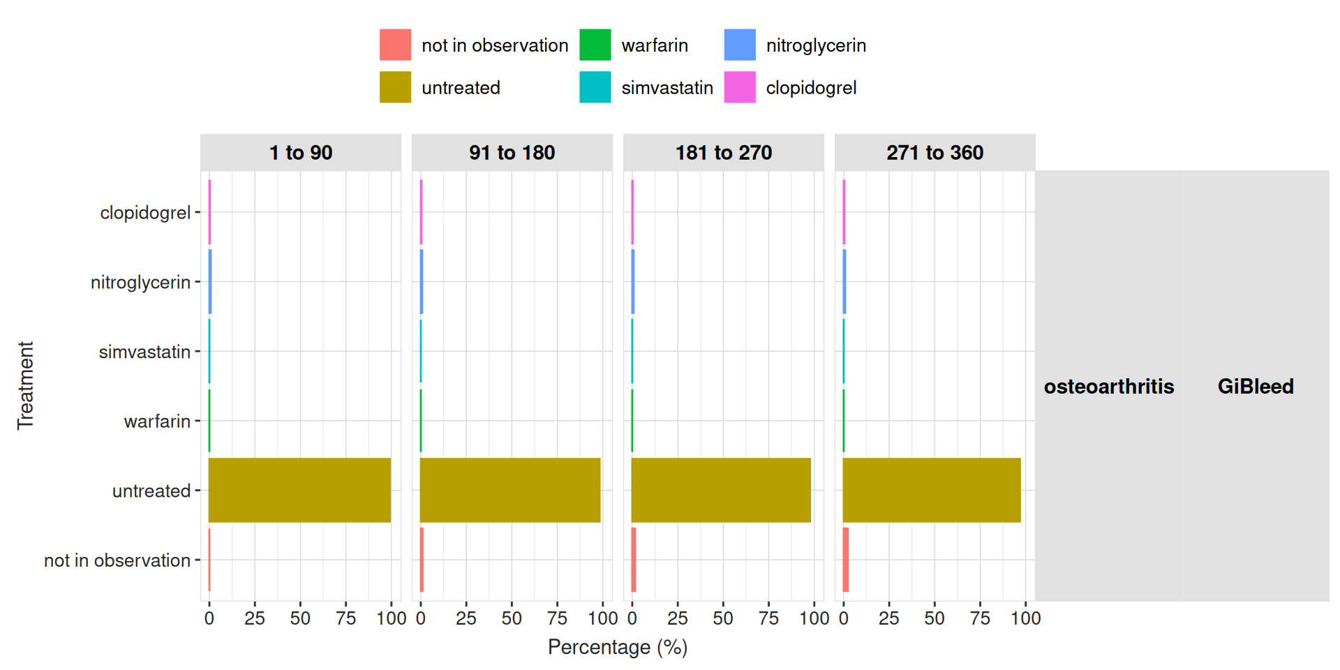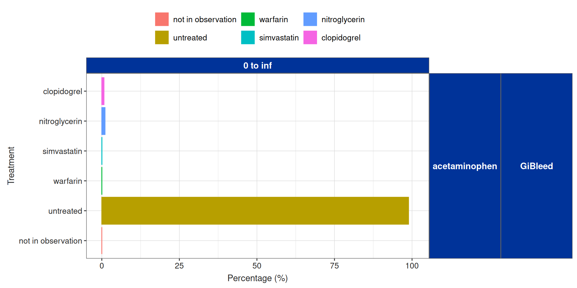 summariseTreatment() is a general function to analyse presence of treatments (cohorts) after an index date. This can be used with many different purposes: